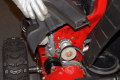 Plasser reima på motorhjulet og rull det på plass. Sett på plass reimdekselet.