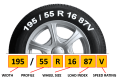 I dette tilfellet viser vi dekk som er 195 millimeter brede. Dekkprofilen viser til forholdet mellom dekkets høyde og bredde. I dette tilfellet er høyden på dekket 55% av segmentbredden.