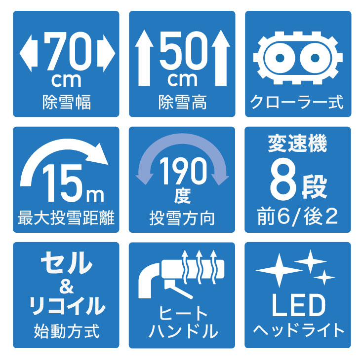 Beltesnøfreser med kraftig original 375cc Loncin motor med 70cm bredde på snøhuset. Denne snøfreseren gjør jobben. Tar seg godt frem, og har utstyr som varme i håndtak, LED-belysning, 190 graders vinkling på snøutkastet, 15m kastelengde m.m. Snøfreseren har 8 gir, er lett og manøvrere med ut-inn kobling av belte-driften med egne spaker på hver side. Loncin motor på 375 kubikk og 11 hestekrefter tar unna mye snø på en gang og egner seg godt for Norske vinterforhold.