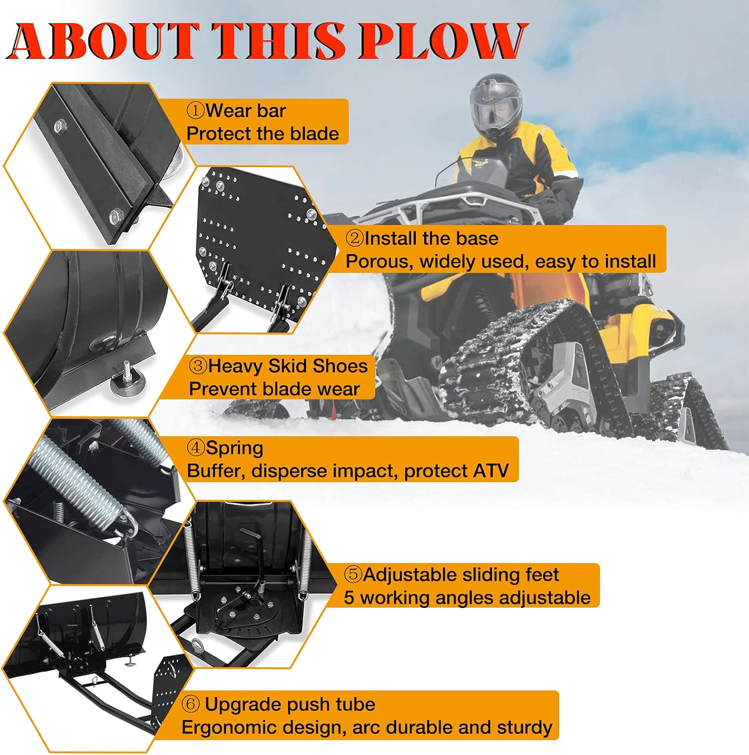 Universal snow plow kit ATV/UTV er et meget populært skjær på markedet. Det er universalt og komplett brøyteskjær med ramme og monteringstilbehør. Passer til de fleste ATV og UTV rammer på markedet. Monteres med universal festeplate og skjæret kan tas enkelt på/av.