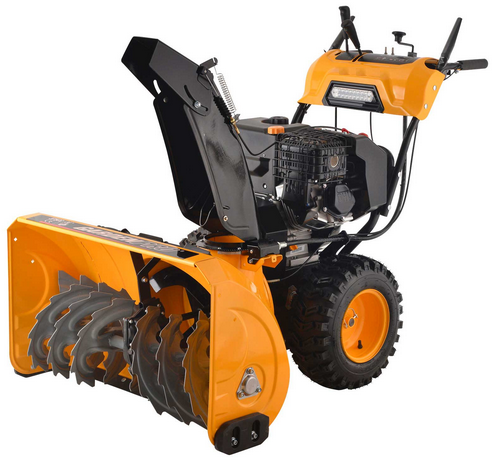 Sagtannet og avstivet mateskrue. Effektiv snøfreser med både snorstart å elektrisk start og LED lys.