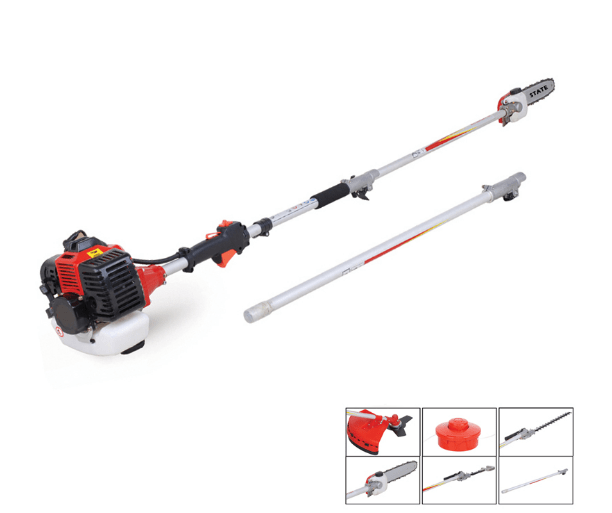 Spesifikasjoner/teknisk informasjon: 4-i-1 multiverktøysettet, inkludert en hekksaks, en motorsag, en ryddesag og en gresstrimmer. Designet for vedlikehold av hagen. Bensindrevet.