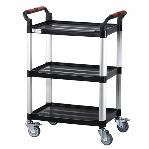 Spesifikasjoner/teknisk informasjon: Stabil avlastningsvogn, perfekt for bruk i garasje, verksted, lagerlokale etc. Konstruksjon av aluminiumsprofiler og tre hyller av kraftig plast. Doble trekkhåndtak.