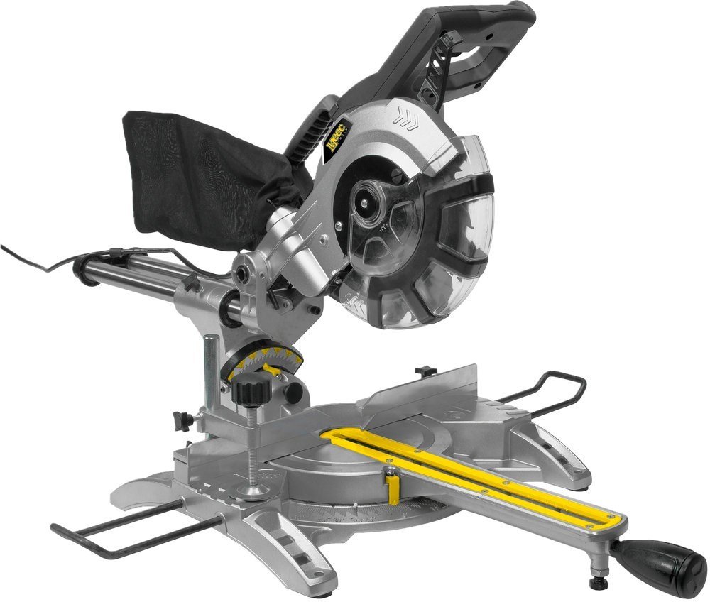 Spesifikasjoner/teknisk informasjon: Allsidig kappsag. Kapp-/gjærsag med 45° helningsvinkel høyre/venstre. Denne kapp-/gjærsagen kapper mange planker eller bjelker samtidig. Den er også midt i blinken når du skal sage og montere lister og fôringer. Skrutvingen holder listene godt på plass, slik at du kan gjærsage med presisjon. Maskinen er utstyrt med integrert sagbladbeskyttelse og støvoppsamler. Bladkapasitet Ø216x30x2,4mm. 230v.